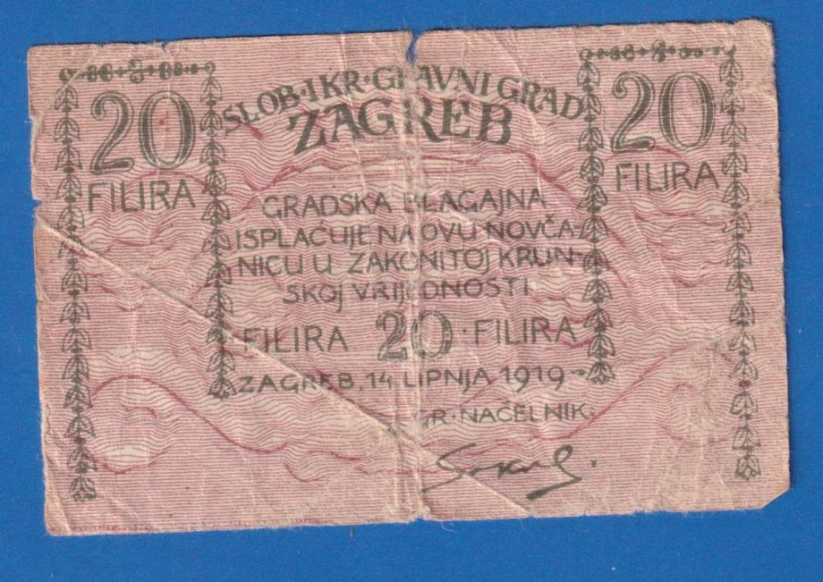 20 filira 1919 Croatia - Hrvatska - - GRAD Zagreb - SHS * 51 *
