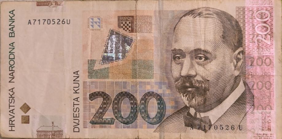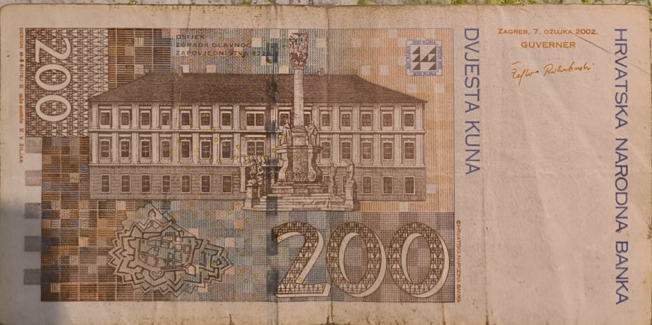 Na prodaju očuvana novčanica iz opticaja od 200kn iz 2002god. Stanje vidljivo na slikama. Cijena 38€ moguće osobno preuzeti ili poslat poštom