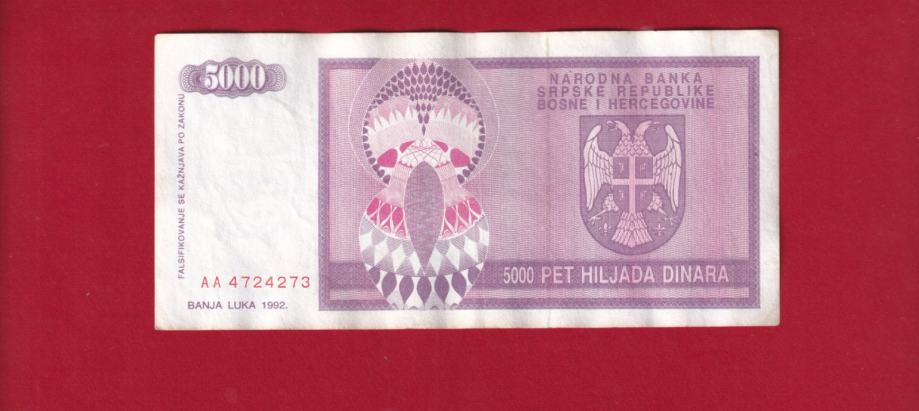 2040 - BANJA LUKA 5000 DINARA 1992 AA4724273