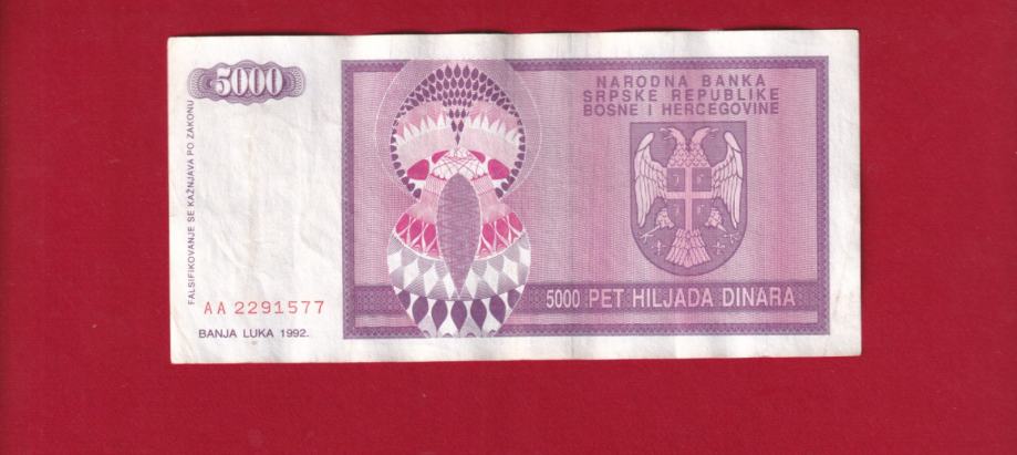 2040 - BANJA LUKA 5000 DINARA 1992 AA4724273