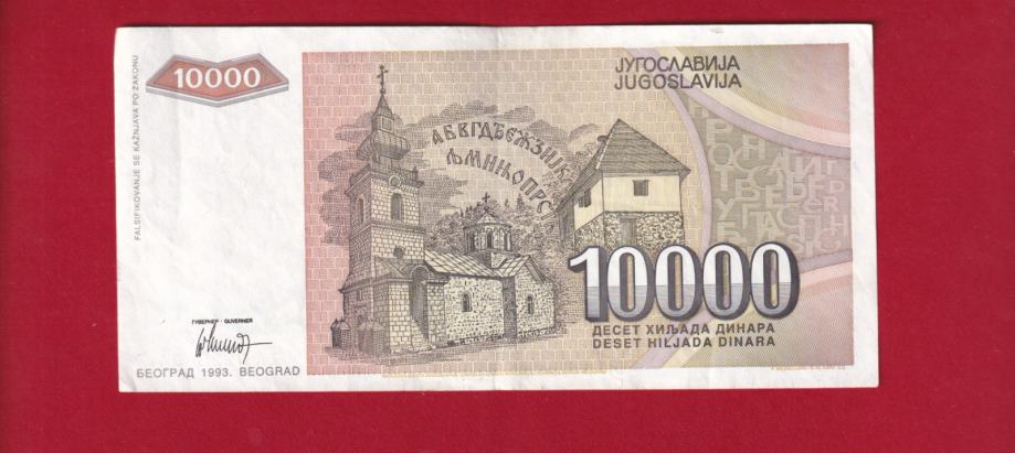 2040 - JUGOSLAVIJA 10 000 DINARA 1993 ZA 0128454 ZAMJENSKA
