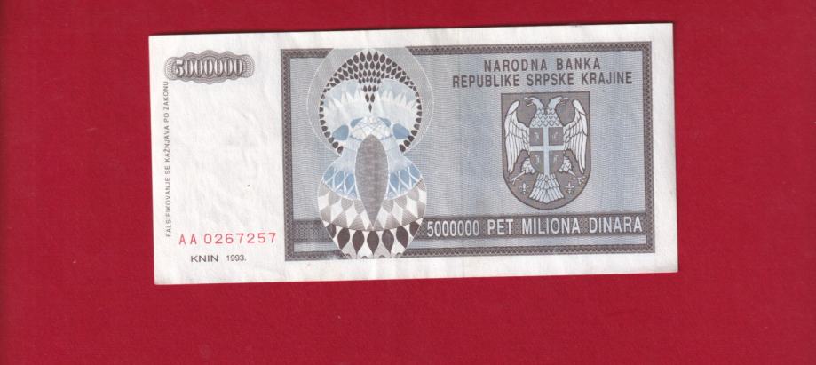 2040 - KNIN 5 000 000 DINARA 1993 AA0267257