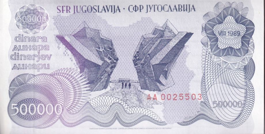 2112 - JUGOSLAVIJA 500 000 DINARA 1989 UNC AA0025503
