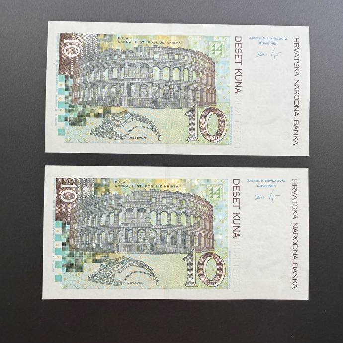 2x 10 kuna 2012. UNC (Dva uzastopna serijska broja)