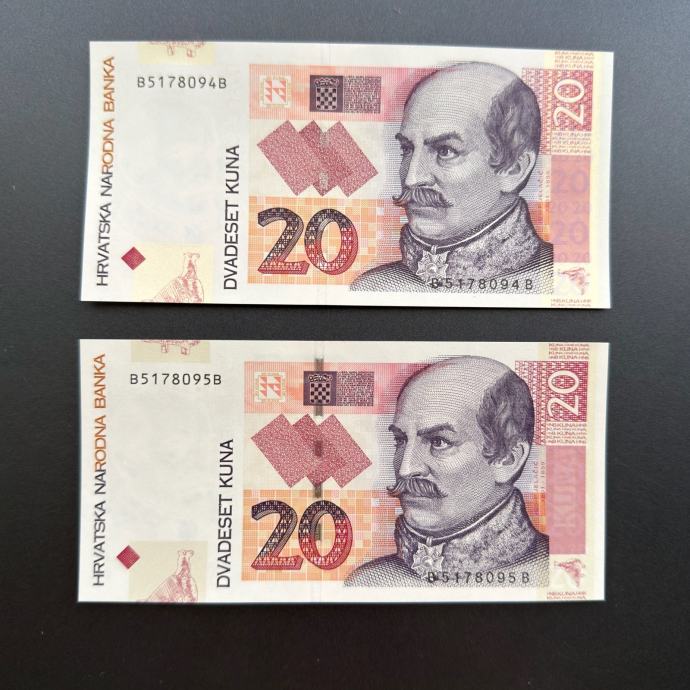 2x 20 kuna 2012. UNC (Uzastopni serijski brojevi)