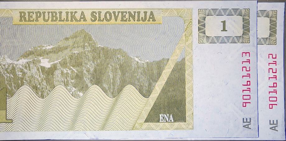 2x SLOVENIJA (1990) 1 Tolar UNC - U Nizu