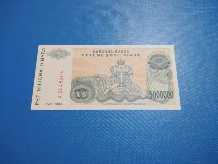 3003 - KNIN 5000 000 DINARA 1993 A0048904 UNC