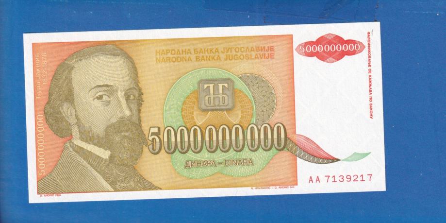 4953 - JUGOSLAVIJA 5 000 000 000 DINARA 1993 UNC