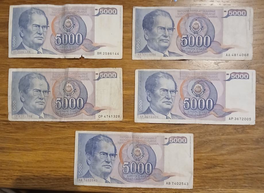 Prodajem 5 novčanica iz SFRJ, s likom Tita, , neke su u veoma dobrom stanju, cijena nije fiksna, pošaljite ponudu