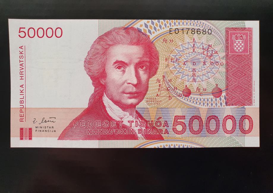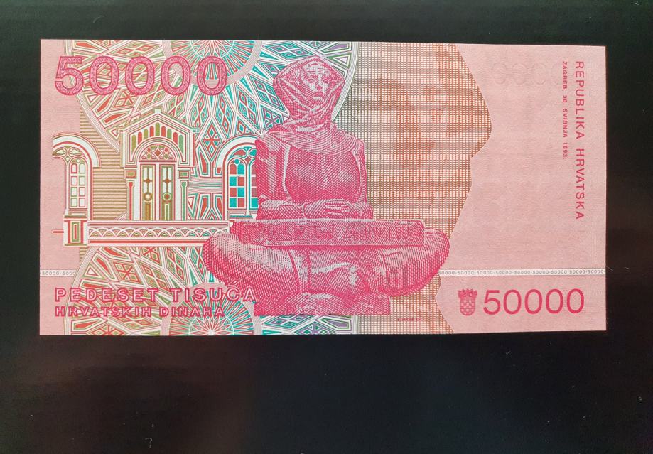 Prodajem novčanicu 50 000 hrvatskih dinara iz 1993. godine, novčanica je u savršenom stanju(UNC). Moguć dogovor oko cijene. Odgovaram na poruke ukoliko vas nešto zanima.
