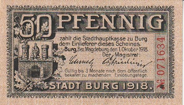 50 PFENNIG BURG 1918 UNC