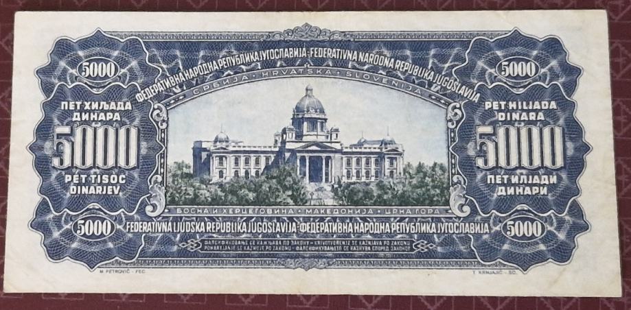 5000 dinara 1955 sa brojem 2