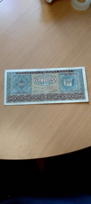 Prodajem novčanicu 5000 kuna 1943.Novčanica je podrapana.
