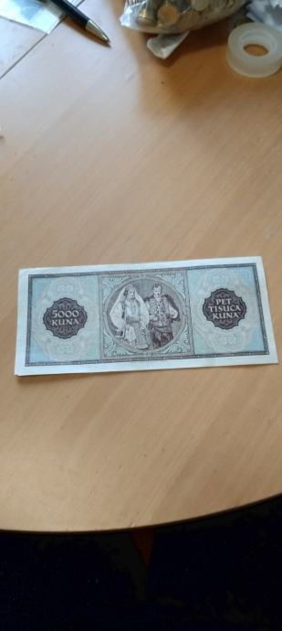 Prodajem novčanicu 5000 kuna 1943.Novčanici fali čošak.