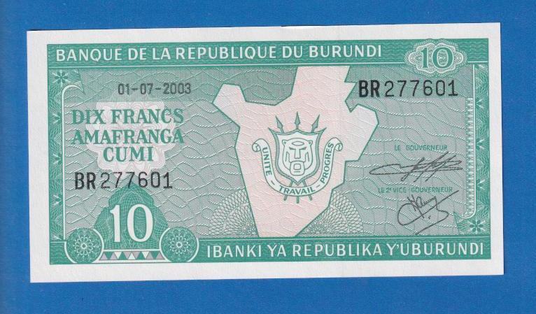 5097 / BURUNDI 10 FRANCS 2003 / UNC / ORIGINALNA NOVČANICA