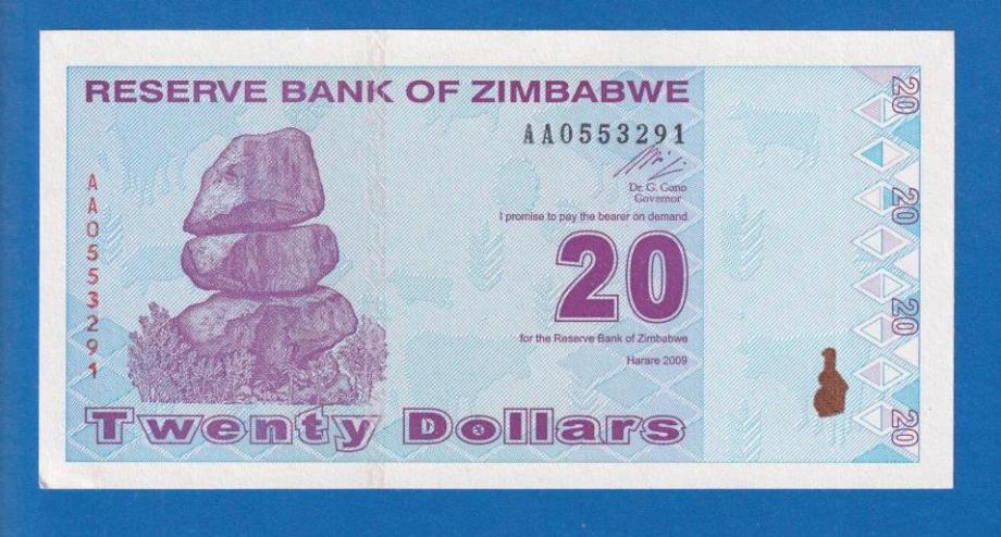 5242 / ZIMBABWE 20 DOLLARS 2009 / UNC / ORIGINALNA NOVČANICA