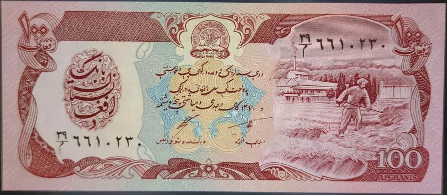 Novčanica: - AFGHANISTAN / AFGANISTAN (1991) 100 Afghanis UNC