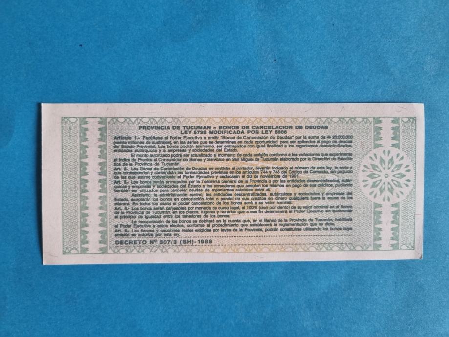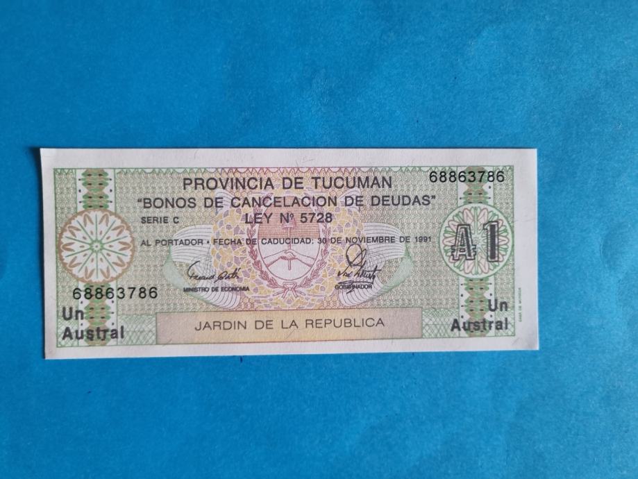 Argentina Provincija Tucuman 1 Austral 1987-1988 UNC