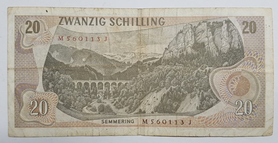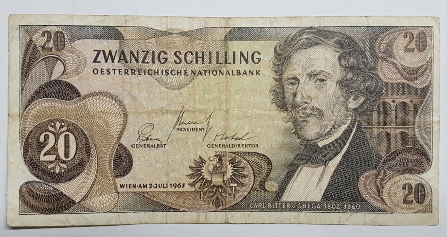 AUSTRIA, 20 SCHILLING, ŠILINGA, 1967.