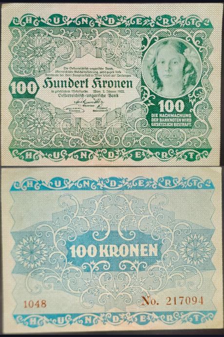Novčanica: AUSTRIA-HUNGARY / AUSTRO-UGARSKA (1922) 100 Kronen