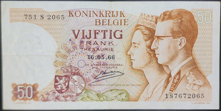 Novčanica: BELGIUM / BELGIJA (1966) 50 Francs