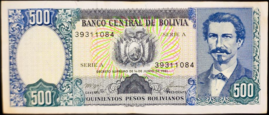 BOLIVIA / BOLIVIJA (1981) 500 Pesos Bolivianos