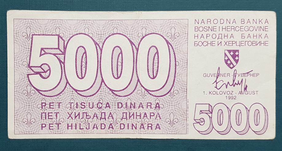 BON, BIH, BOSNA, 5000 DINARA, 1992.