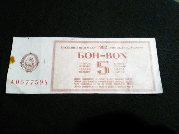 Bon Jugoslavija za 5lit.benzina,prosinac 1982.god. raritet