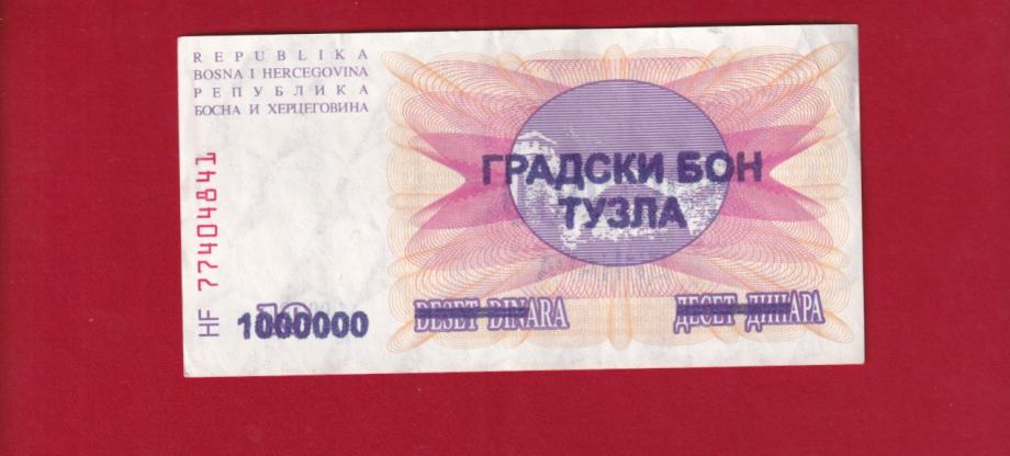 BOSNA 1 000 000 DINARA 1992 GRADSKI BON TUZLA 77404841 UNC / 5004