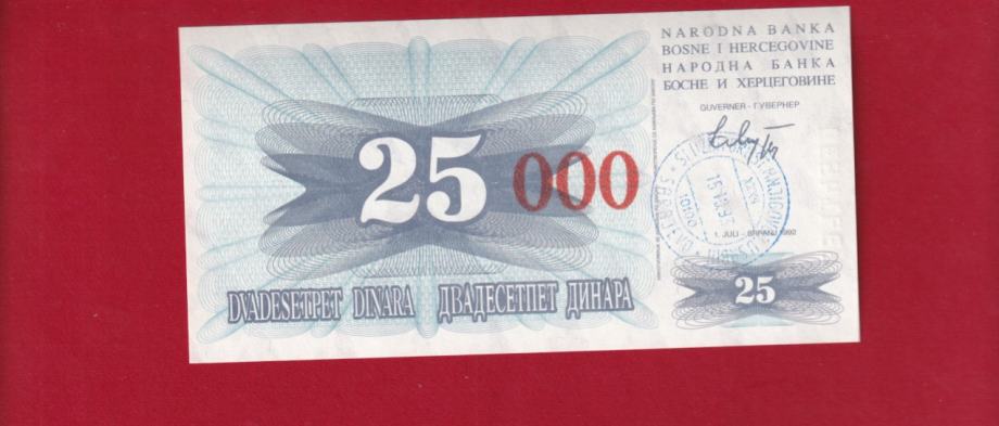 BOSNA 25 000 DINARA 1992 1993 CRVENE NULE 63914530 UNC - 4978