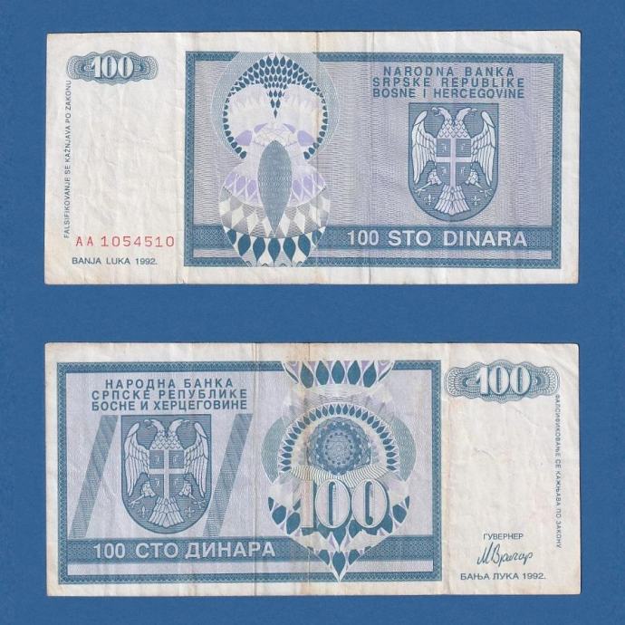 BOSNA - BANJA LUKA 100 DINARA 1992 // 6182