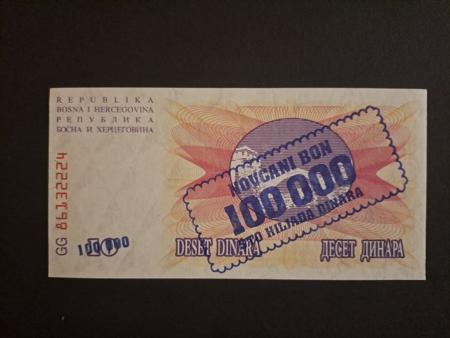 Bosna i Hercegovina 100 000 Dinara Novčani bon UNC