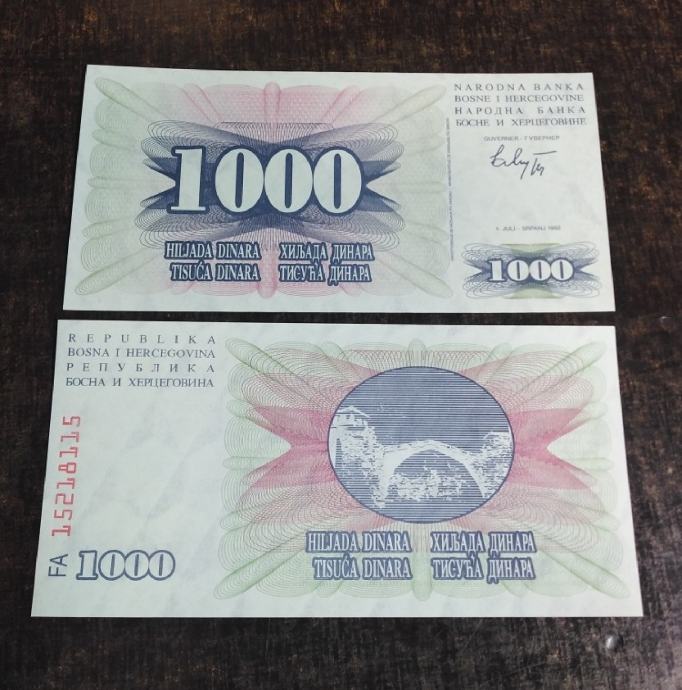 BOSNA I HERCEGOVINA 1000 DINARA 1992 UNC