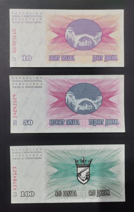 Prodaje se LOT BiH dinara s apoenima 10, 50, 100, 500 i 1000 u UNC stanju.