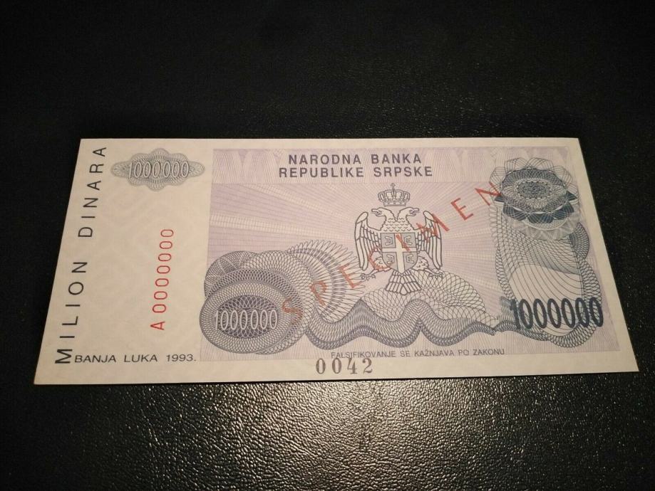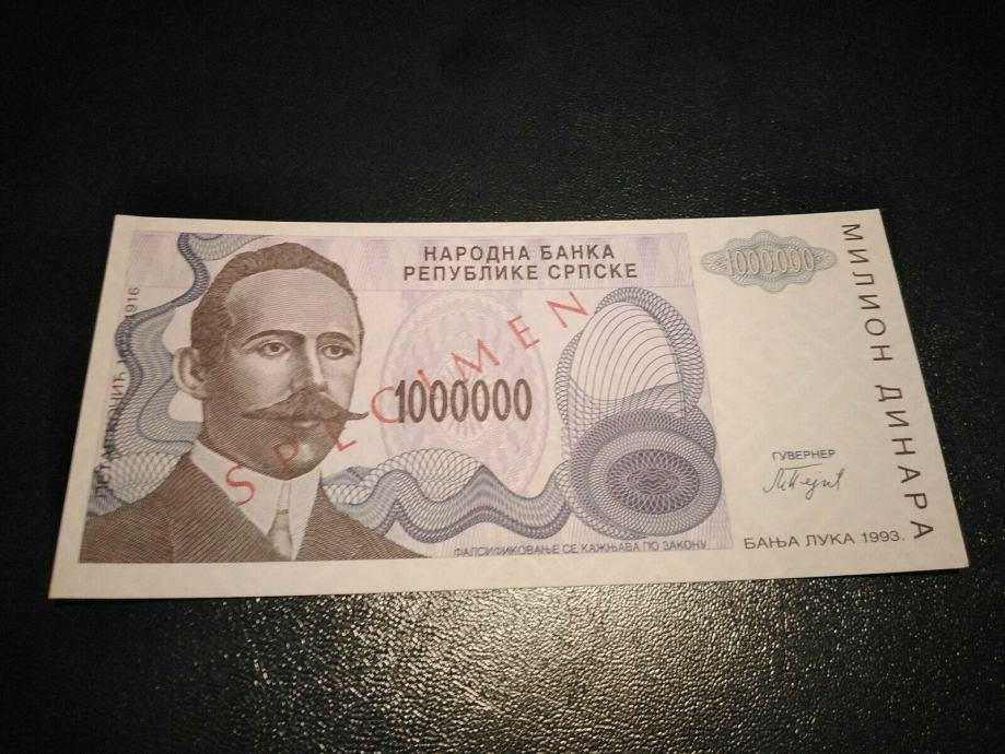 Bosna Yugoslavia Banja 1000000 Petar Kočić dinara 1993 UNC SPECIMEN