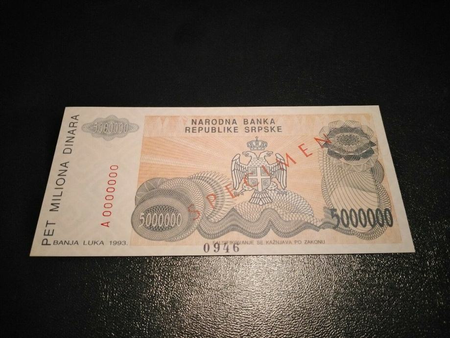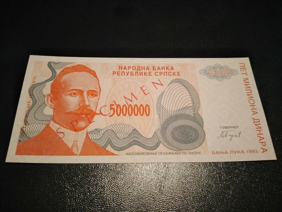 Bosna Yugoslavia Banja 5000000 Petar Kočić dinara 1993 UNC SPECIMEN