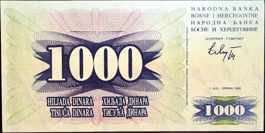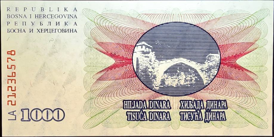 Novčanica: - BOSNIA / BOSNA (1992) 1000 Dinara UNC