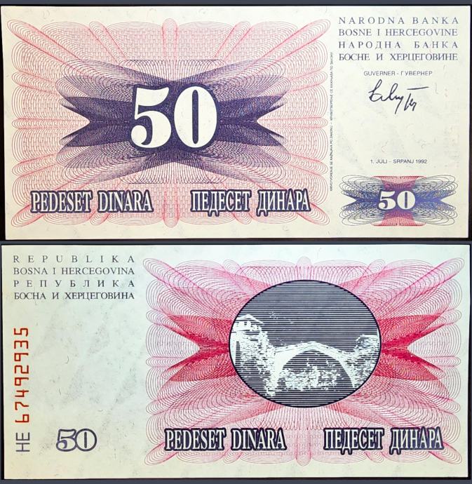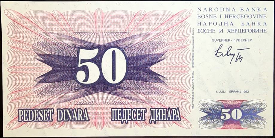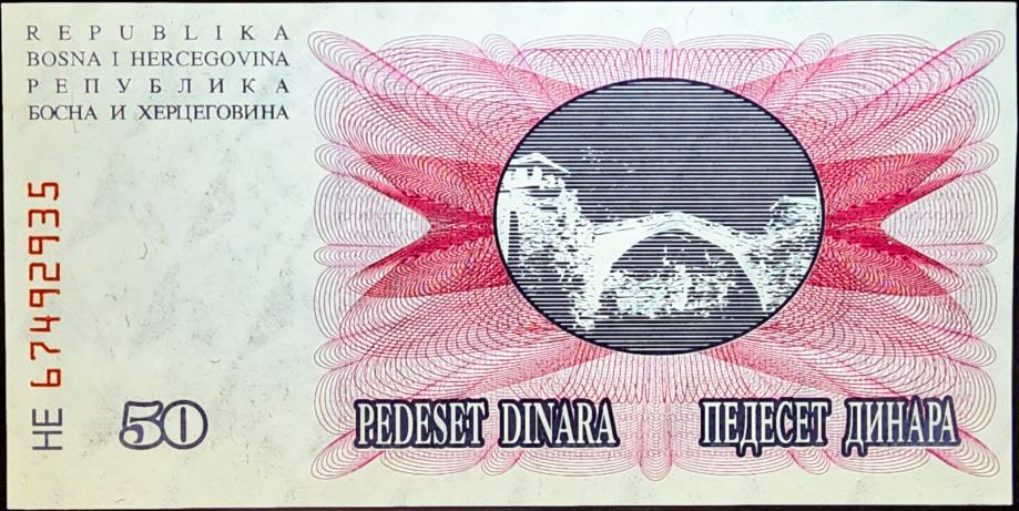 Novčanica: - BOSNIA / BOSNA (1992) 50 Dinara UNC