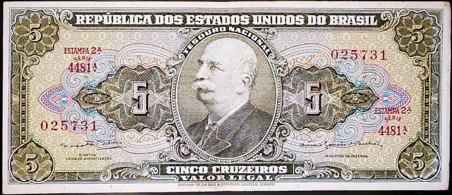 Novčanica: - BRAZIL (1964) 5 Cruzeiros