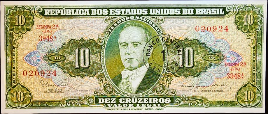 Novčanica: - BRAZIL (1967) 10 Cruzeiros (s pretiskom) UNC