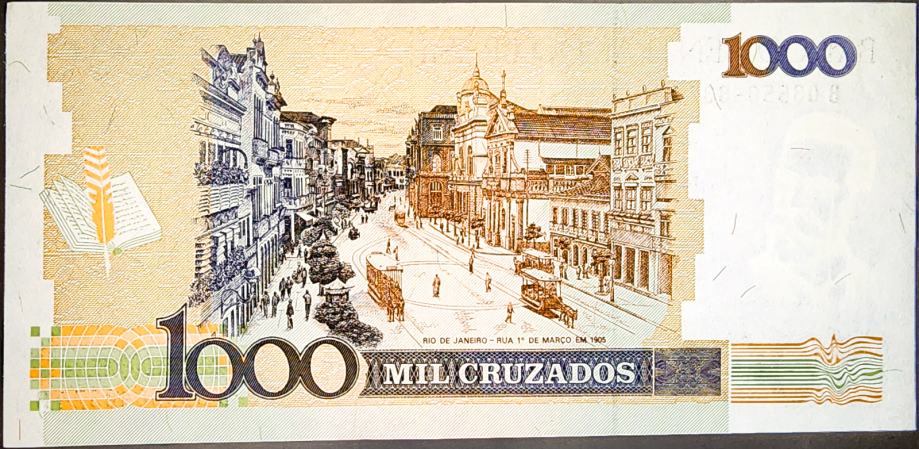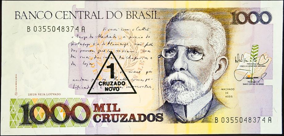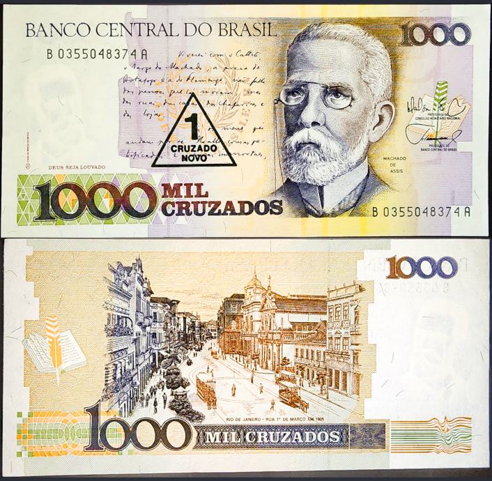 Novčanica: - BRAZIL (1989) 1000 Cruzados (s pretiskom) UNC