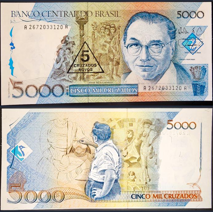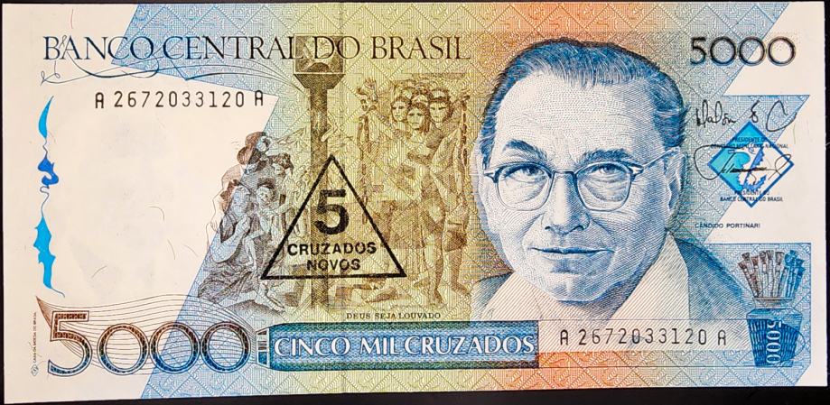 BRAZIL (1989) 5 Cruzados Novos overprinted UNC