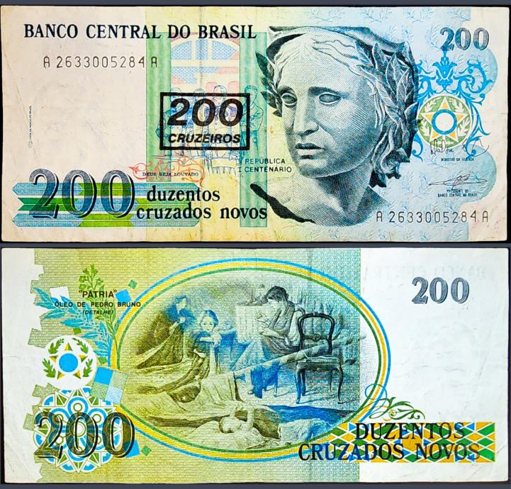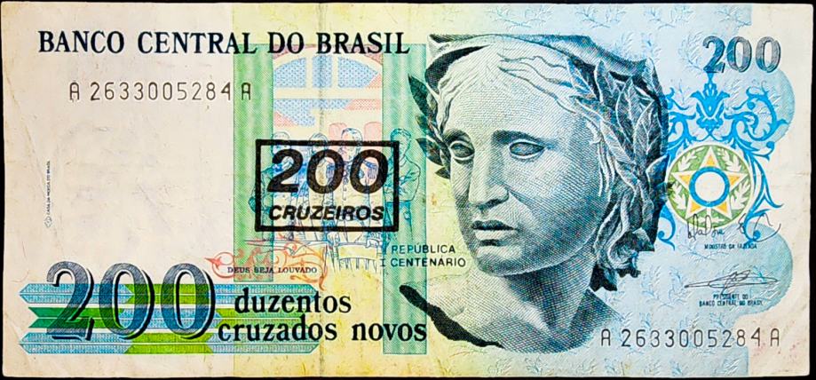 Novčanica: - BRAZIL (1990) 200 Cruzeiros (s pretiskom)