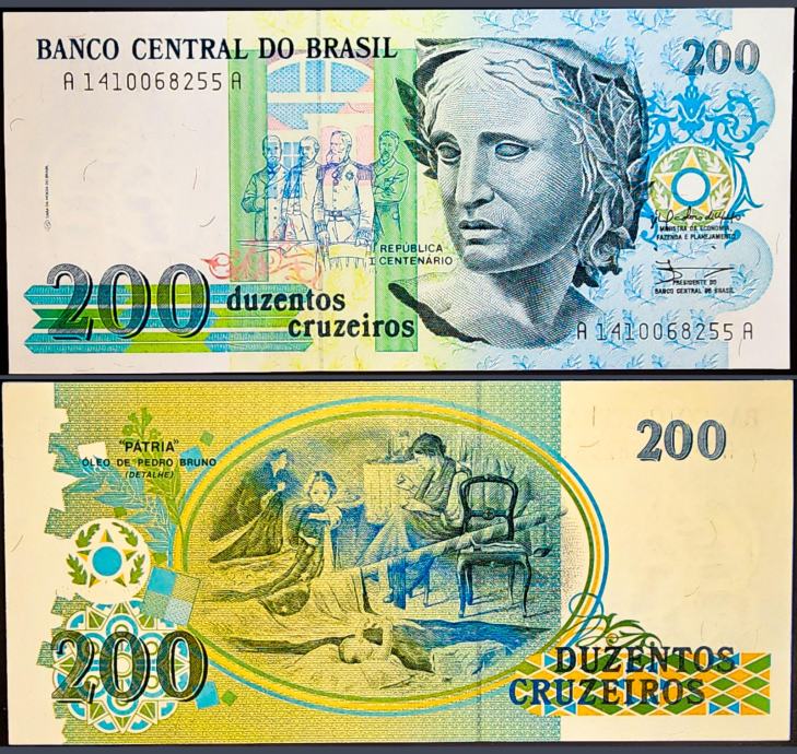 Novčanica: - BRAZIL (1990) 200 Cruzeiros UNC