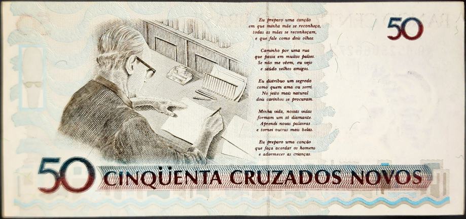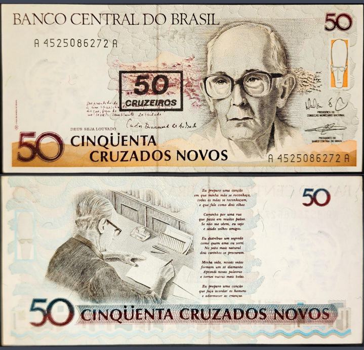 Novčanica: BRAZIL / (1990) 50 Cruzados Novos (s pretiskom)