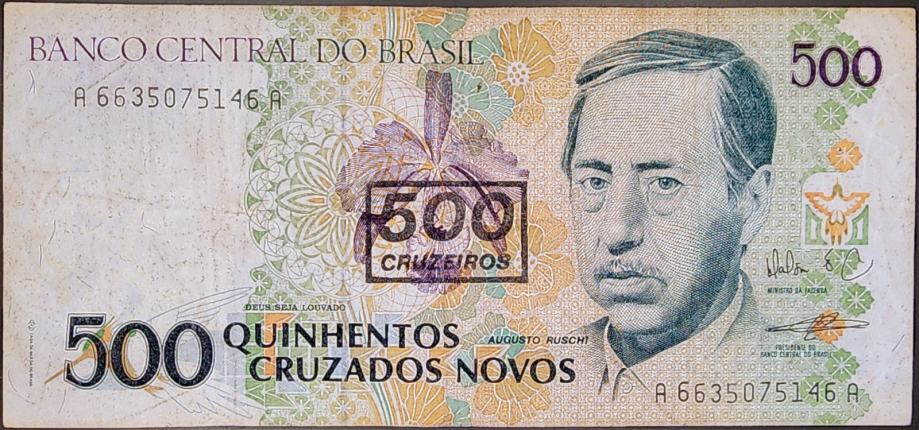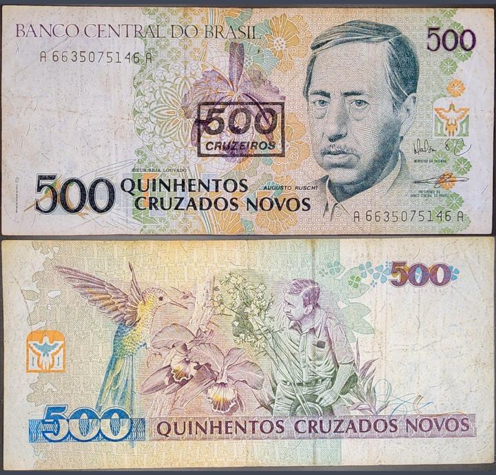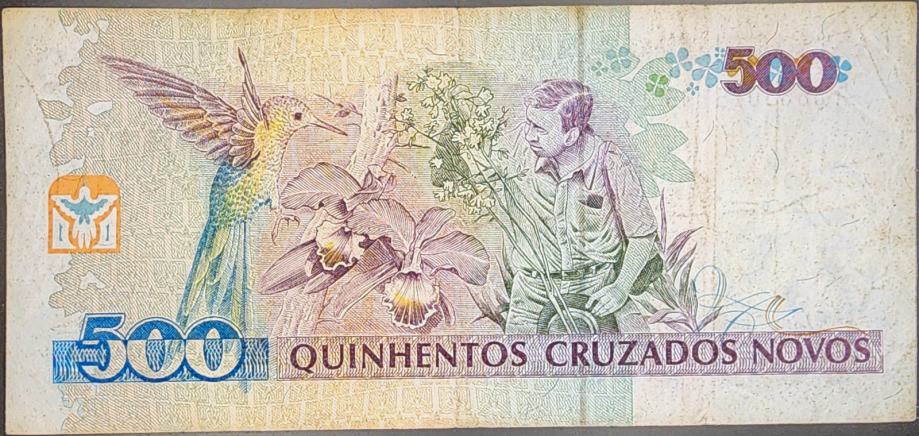Novčanica: - BRAZIL (1990) 500 Cruzados novos (s pretiskom)
