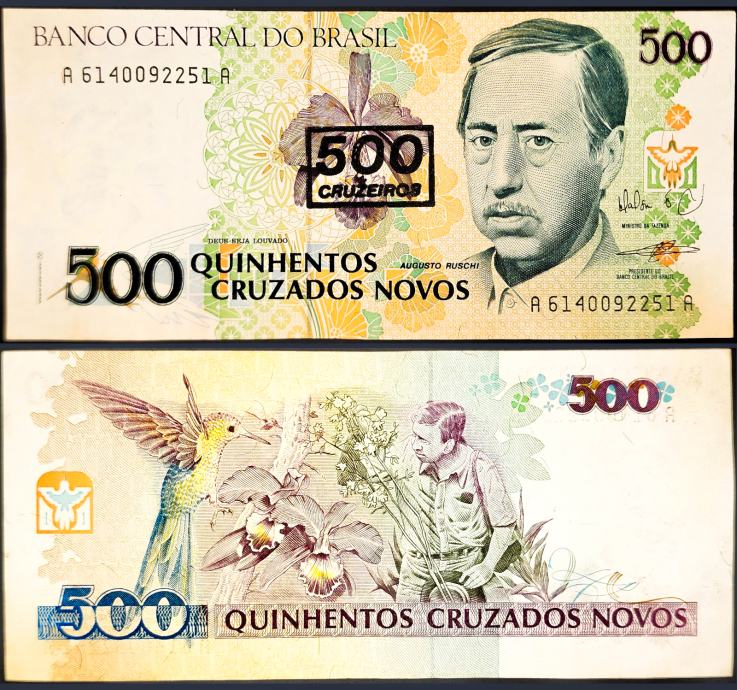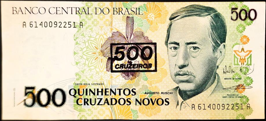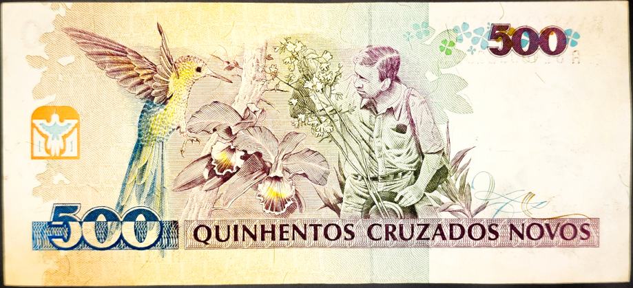 Novčanica: - BRAZIL (1990) 500 Cruzados novos (s pretiskom)