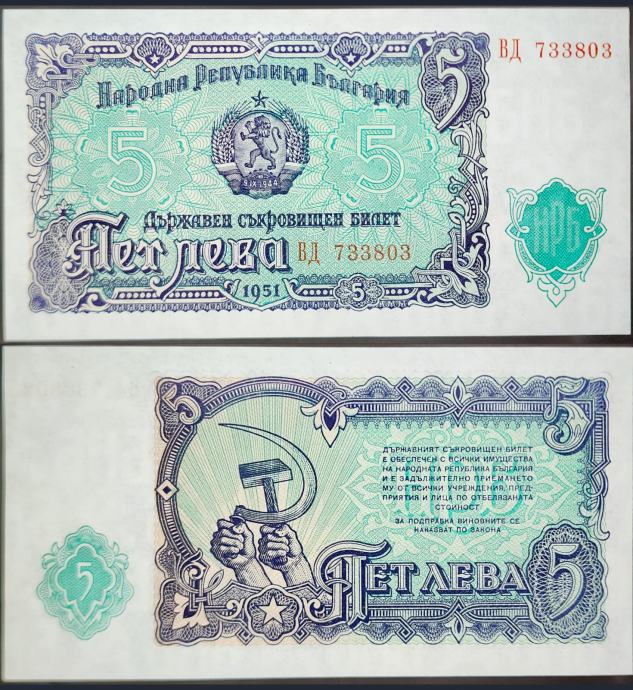 Novčanica: BULGARIA / BUGARSKA (1951) 5 Leva UNC