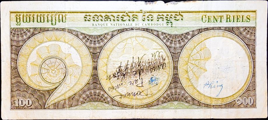 Novčanica: CAMBODIA / KAMBODŽA (1972) 100 Riels