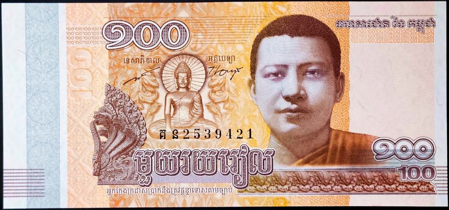 Novčanica: - CAMBODIA / KAMBODŽA (2014) 100 Riels - Norodom Sihamoni UNC